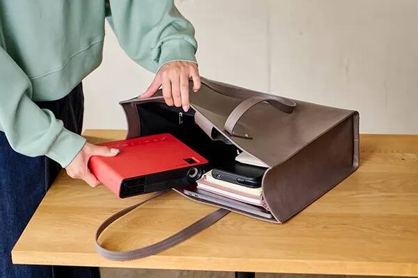 パワフルなのにA5サイズ、1.1㎏と持ち運びやすいコンパクトなプロジェクターは、研究室内はもちろん、教室での講義やゼミ合宿など、活動に応じた研究室外への持ち運びも抵抗なく行えます。さらに別売品のバッテリーによって、電源コンセント有無に縛られず、様々な場所を大画面による学びやプレゼンの場へと変えていきます。