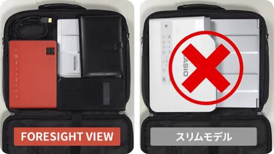 FORESIGHT VIEWは、世界最小・最軽量※。 バッテリーやケーブルを含めてビジネスバッグにすっきり収まり、 得意先・出張先など、様々な場所へスマートに持ち歩けます。