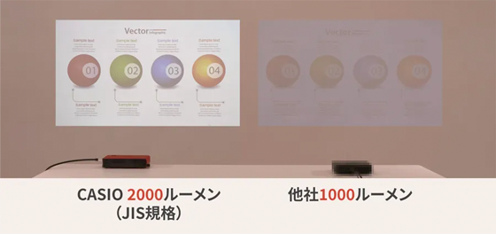 JIS X 6911準拠で明るさ2000ルーメン以上のプロジェクターとして。カシオ調べ。
