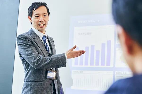 FORESIGHT VIEWは、JIS規格の2000ルーメン※の明るさで、明るい部屋でも電気を消さずに投映可能。お客様の表情や仕草を見ながらプレゼンテーションをすることができます。