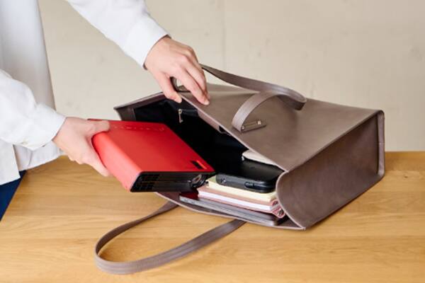 FORESIGHT VIEWはA5サイズ・約1.1kgの小型軽量タイプ。電源コードやバッテリーと合わせてもビジネスバッグに収まり、電車移動の際も邪魔になりません。