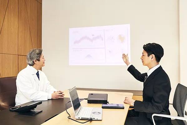 最短2ステップで投映開始できるFORESIGHT VIEWで、ドクターとの貴重な時間を無駄にしない商談を実現。 残りの時間をプラスαに充て、チャンスを広げます。