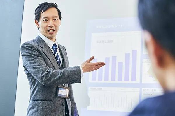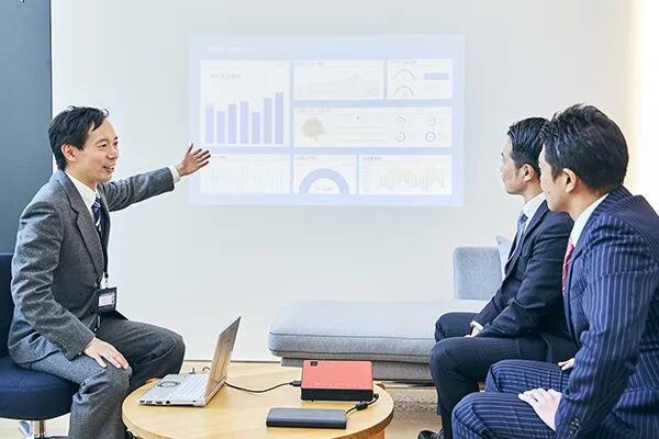 部屋を暗くする必要がないので、経営層の反応を見ながらプレゼンテーションが可能。思いを込めたプランを力強く伝えます。
