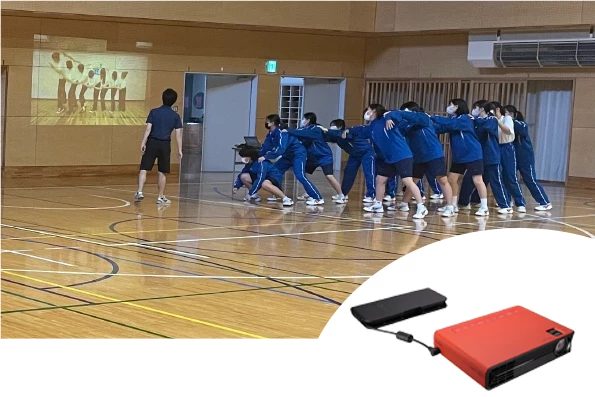 FORESIGHT VIEWの高い携帯性は体育授業の中でも用意に手間を取らせません。また、カシオレーザー&LEDハイブリッド光源モデルは電源オンからいつでも約5秒で明るく投映完了します。複雑な操作が不要で直感的な操作にて扱えるため、体育用具と同じく生徒自身で用意する、といった運用が可能となります。