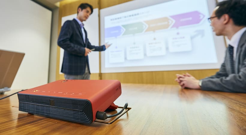 高いモバイル性とユーザビリティー、ステータス感の3つを備えたプロジェクターの誕生です。