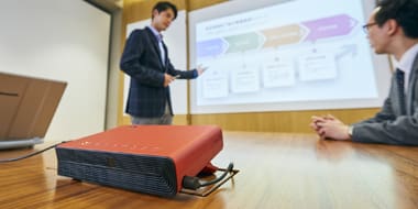 しかし、一方で対面コミュニケーションの必要性が再認識されています。対面機会が減少して貴重になっていることから、その価値は今まで以上に増しているといえます。お客様との重要な商談や、ここ一番のプレゼンテーションは、対面コミュニケーションが必要になります。また、ワークプレイスの多様化に伴い、客先や社内を問わず、いつでもどこでも簡単に情報共有ができるモバイルプレゼンテーションツールへのニーズも高まっています。カシオのスマートスタイル・プロジェクターFORESIGHT VIEWは、クラス最小・最軽量※の高輝度2000ルーメン。持ち運べる明るい大画面が、貴重な対面商談やプレゼンテーション効果を最大化致します。