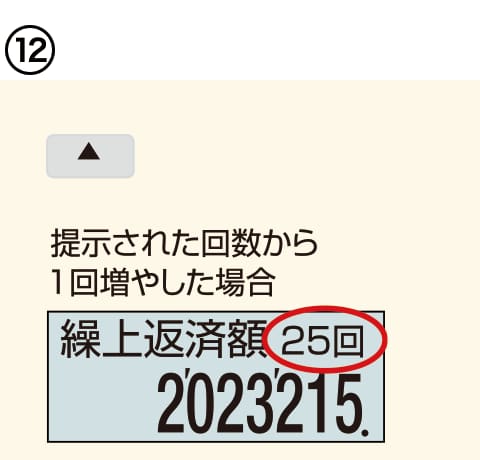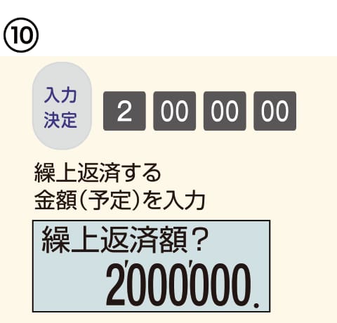 「上下キー」で短縮回数を増減して繰上返済額のシミュレーションができます。