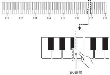 ①FUNCTIONボタンを押したまま、オートパワーオフ鍵盤(B6)を押します。