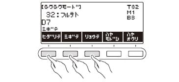 らくらくモード画面、ステップアップレッスン画面にて練習する手(右手・左手・両手)を選ぶことができます。