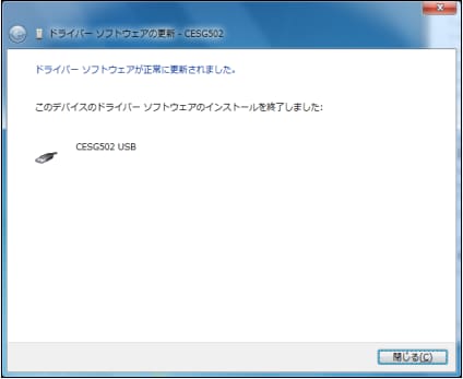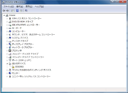 『CESG502』の状態を確認し、?や!が表示されていた場合、USBドライバが正しくインストールされていませんので、続けて「USBドライバの更新手順」に従いUSBドライバを更新してください。