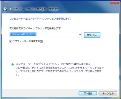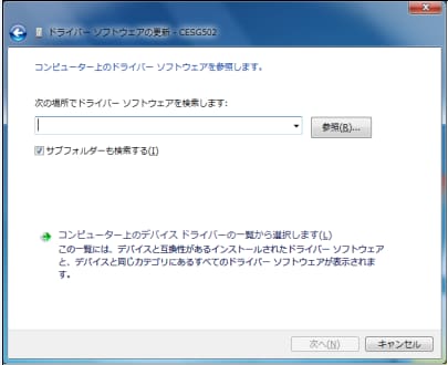 - ドライバーソフトウェアの場所を指定します。