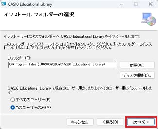 - 「CASIO Educational Libraryのインストール」が表示されます。