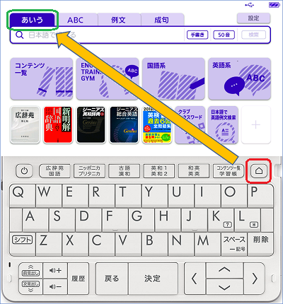 (操作例)「あいう」タブが選択されている時は、右キーを4回押します。