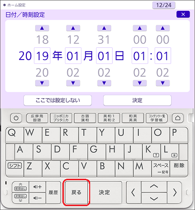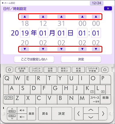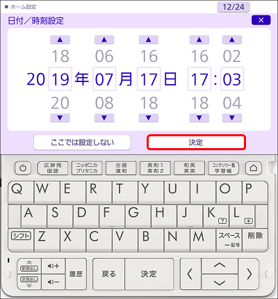 ⑪「決定」をタッチすると、「日付/時刻設定」は完了です。