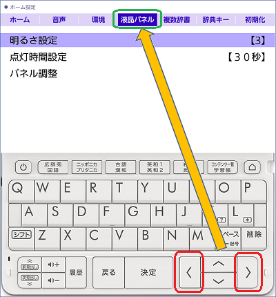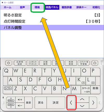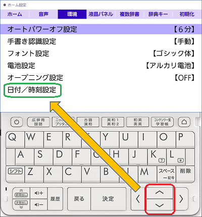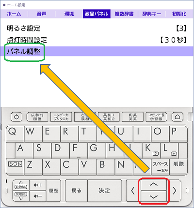 キーボードを使用して、下記の操作で「パネル調整」を行った後に、「日付/時刻設定」を行ってください。
