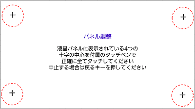 画面に表示される4つの十字マークの中心を、付属のタッチペンで正確にタッチしてください。