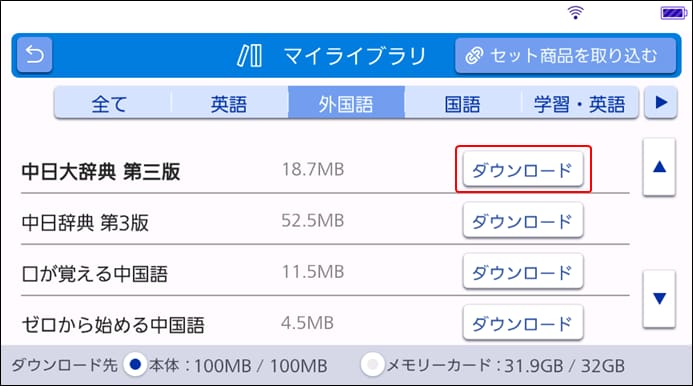 「中日辞典 第3版」の「ダウンロード」をタッチしてください。
