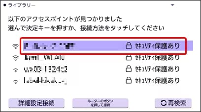 ・「再検索」をタッチすると、表示されているアクセスポイントを更新することができます。