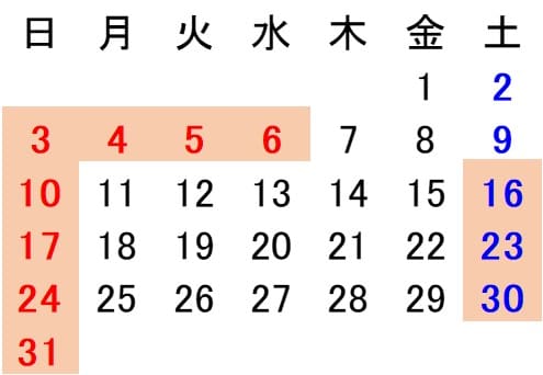 お問い合わせ先 営業カレンダー