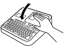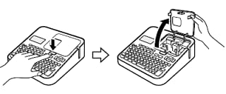 - 収納部オープンボタンを押して、テープカートリッジ収納部のカバーを開けます。