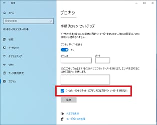 - 「ローカルのアドレスにはプロキシサーバーを使わない。」を