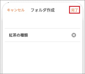- フォルダ名に”紅茶の種類”と入力し、「完了」をタップします。