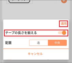 - 「テープの長さを揃える」をONにして「適用」をタップします。