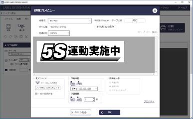 印刷プレビュー画面で「拡縮印刷」でラベル幅を選択すると、そのラベル幅に合わせて、一時的にラベル全体を拡大/縮小して印刷できます。