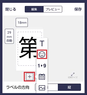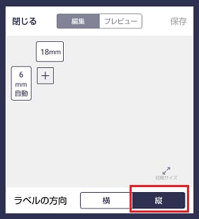- ラベルの方向を[縦]をタップし、縦置きに変更します。