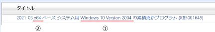 1. 下表より該当のOSの更新プログラム(KB5001649)をクリックします。