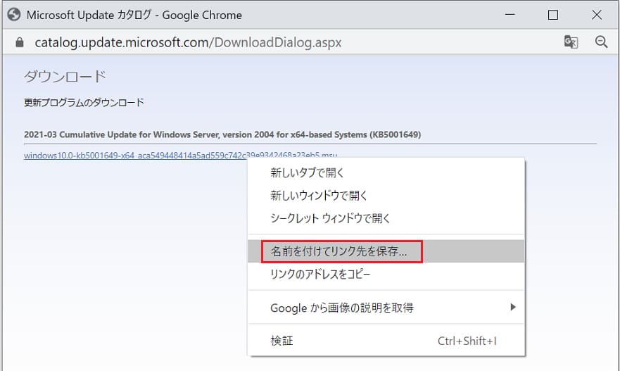 反応がない場合、右クリックして[名前を付けてリンク先を保存]をクリックして任意の保存先に保存します。