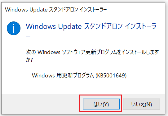 4. 保存したセキュリティ更新プログラムを起動し、[はい]をクリックしてインストールを開始してください。