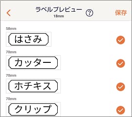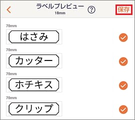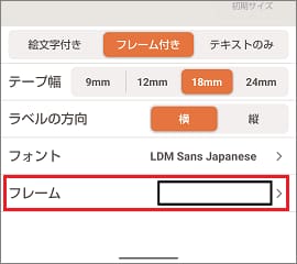 例)テープ幅18㎜、ラベルの方向横、フレーム付きのラベルを作成します。