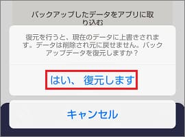 - [はい、復元します]をタップします。