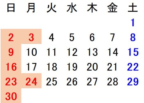 秋葉原サービスステーション 営業カレンダー