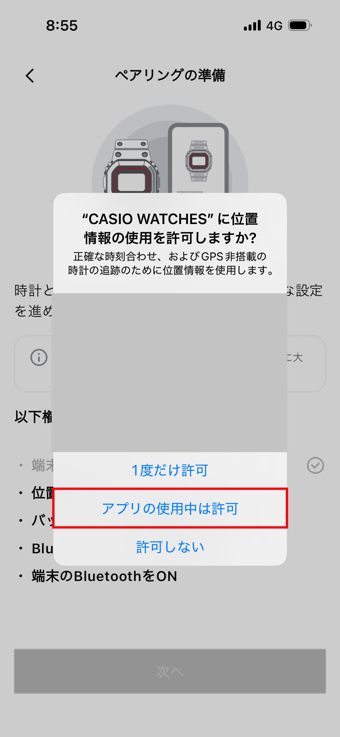 アプリに時計を登録して、ペアリングをします。