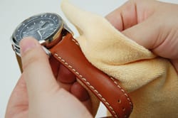防水時計の一部にデザイン上、皮革バンドを使用しているモデルがありますが、皮革バンド付の状態で、水仕事・水泳など直接水のかかるご使用はお避けください。