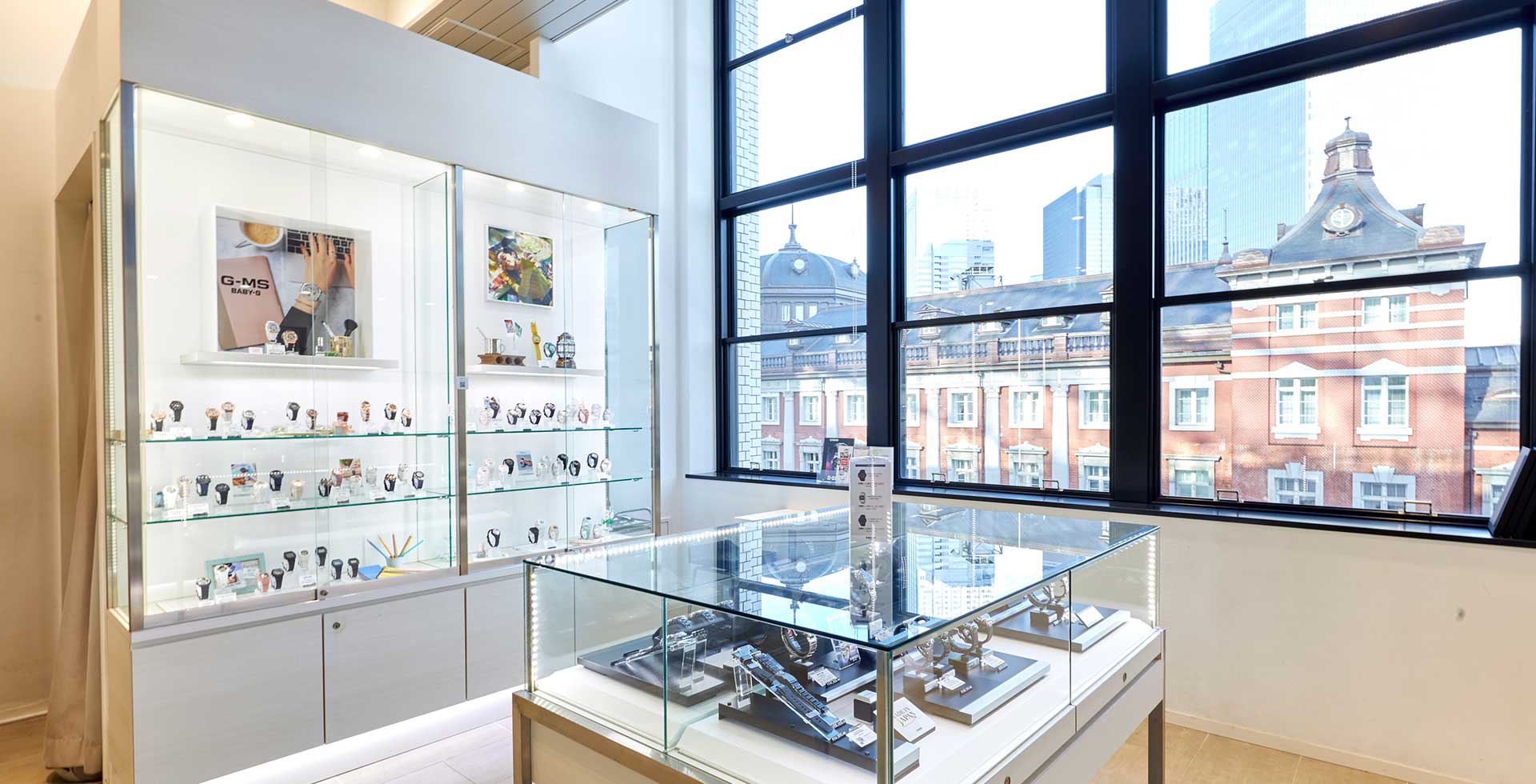 東京駅すぐ近くKITTE丸の内 3FにあるG-SHOCK STORE MARUNOUCHIです。雨の日でも地下街から濡れずにご来店いただけます!