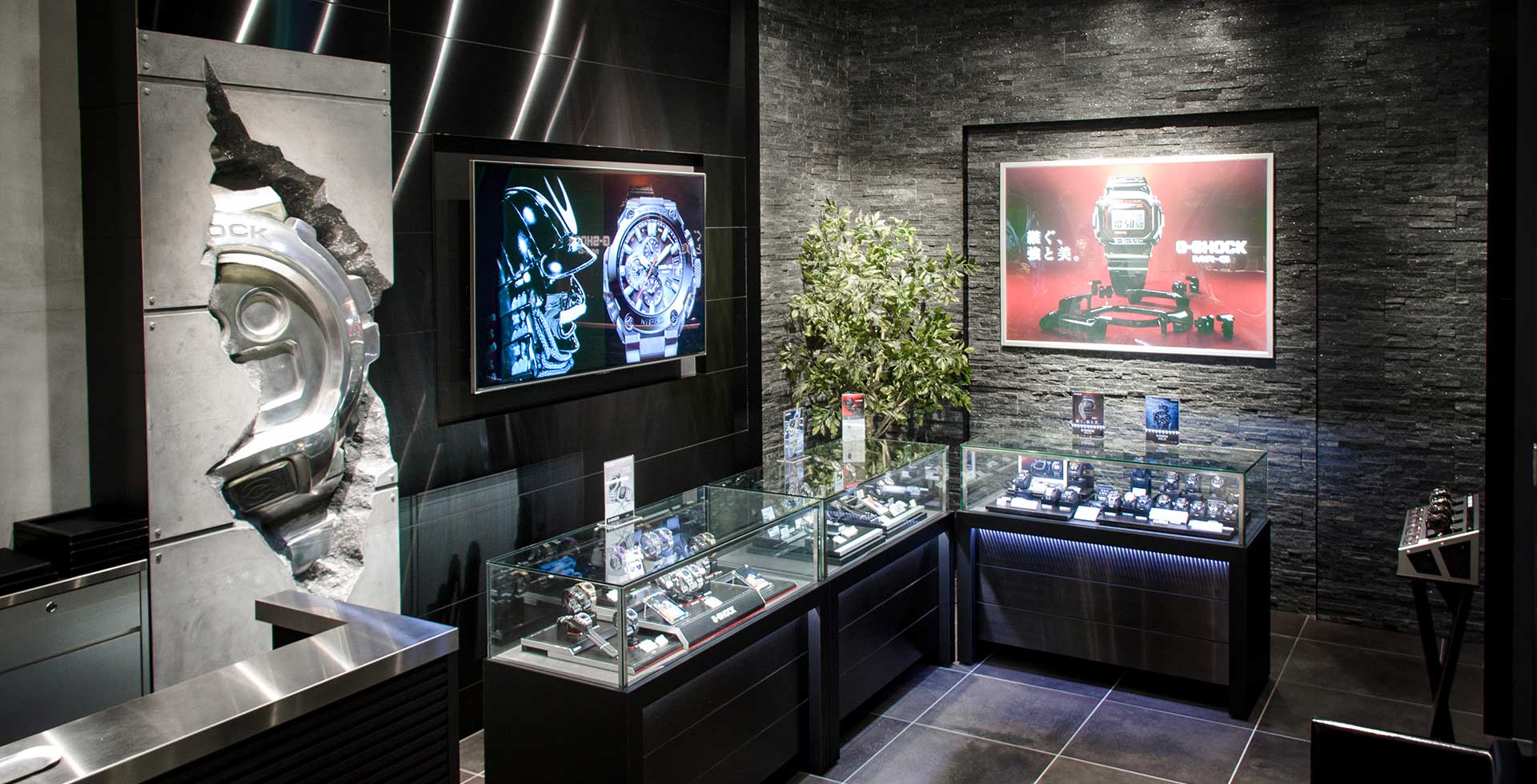 直営店最大の売場面積を誇るG-SHOCK STORE OSAKA!大阪の玄関口にひろがるグランフロント大阪の北館1Fにございます。広々とした店内には、最新・人気モデルを常時300モデル以上ラインアップ!専門技師が常駐するメンテナンスブースも併設し、アフターサービスも万全です。修理のご相談もお気軽にどうぞ!皆様のご来店を、スタッフ一同お待ちしております。