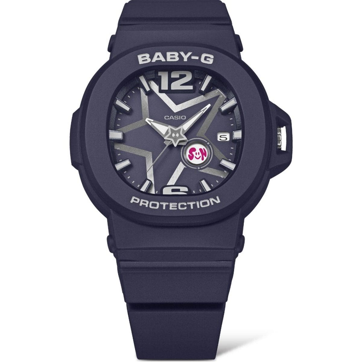 ダイアルを彩るスターモチーフと煌めきのメタリックカラー。ポップでスペーシーなルックスが、近未来をイメージしたY3Kスタイルのファッションとほどよくマッチ。時刻が見やすい3針アナログフェイスに日付・曜日表示を備え、デザイン性と実用性を両立しました。さらに、曜日表示に7タイプの異なるデザインを採用。日替わりで表情を変えるBABY-Gらしい遊び心もプラスしています。