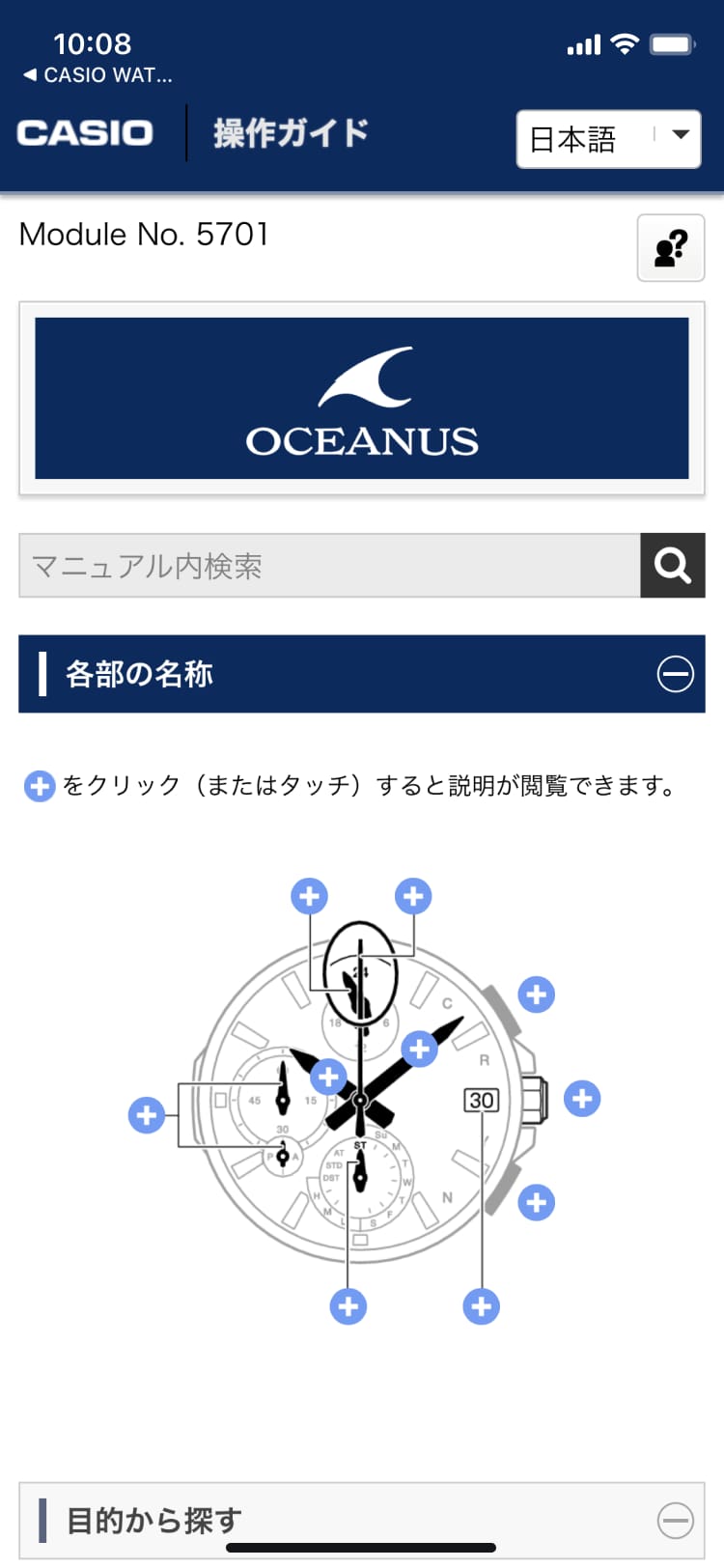 MY WATCHに登録した腕時計の取扱書をすぐに確認でき、モジュール番号も必要なく、いつでも調べることができます。