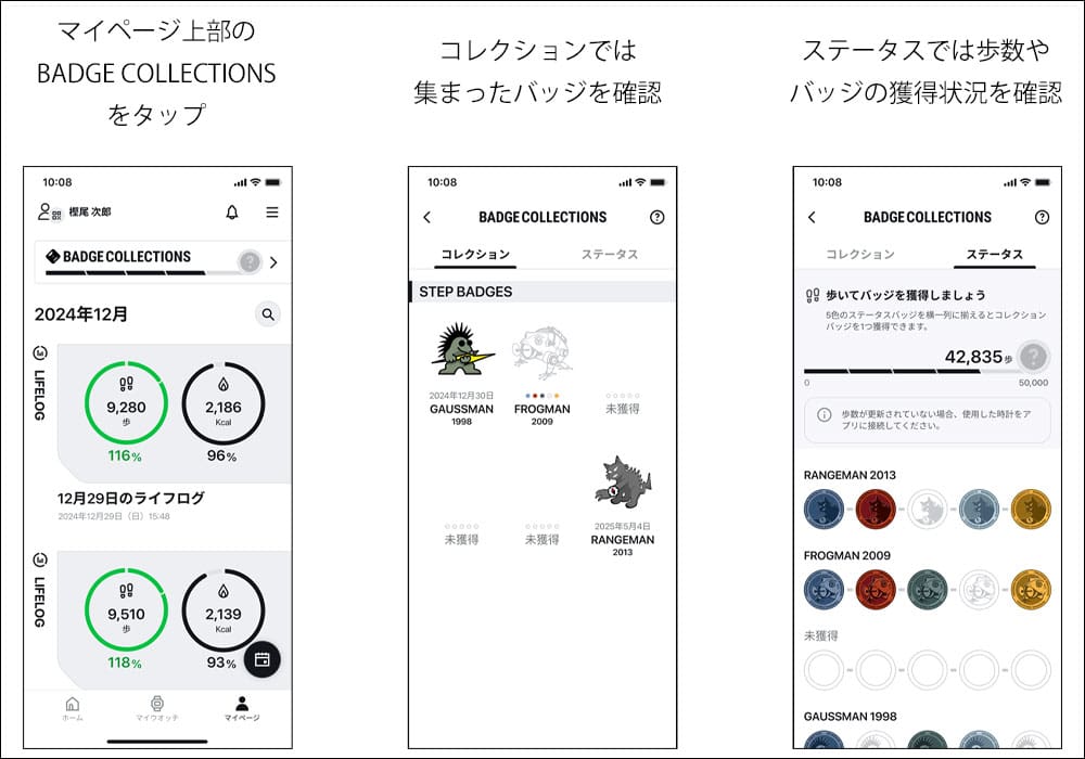 毎日の一歩に楽しさを感じて頂ける、「BADGE COLLECTIONS」機能を搭載。