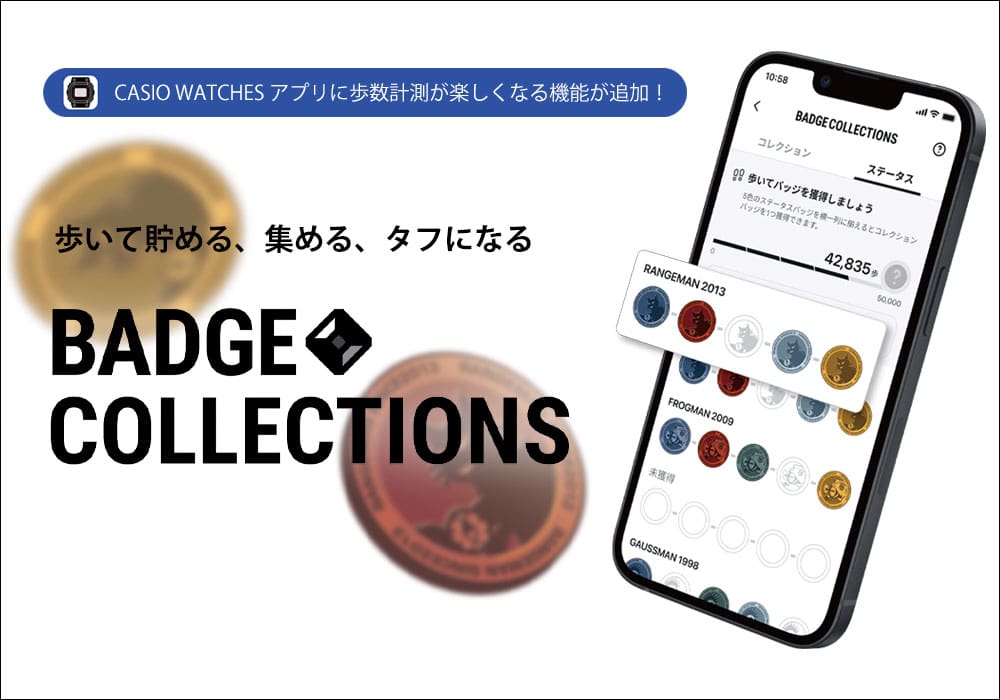 ステップトラッカー搭載モデルと連携すれば、歩数に応じてカシオオリジナルのバッジを集められる「BADGE COLLECTIONS」に参加でき、毎日の一歩がより楽しい体験になるでしょう。