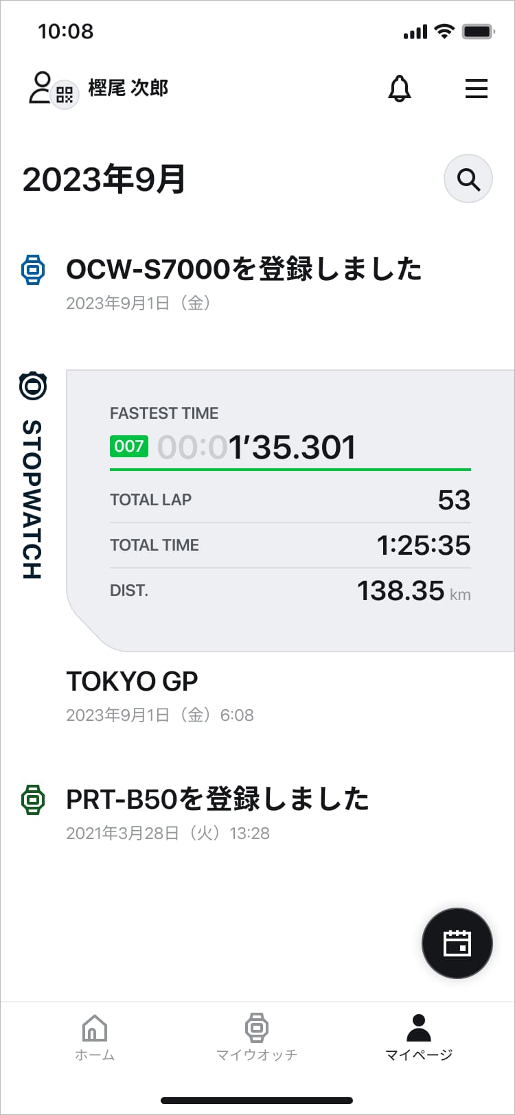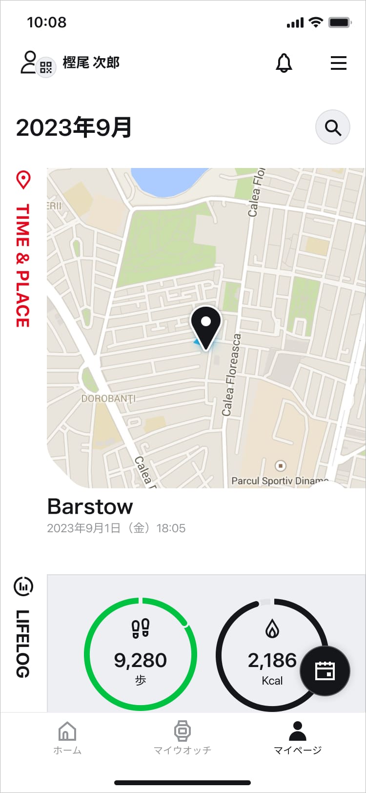 「マイページ」では、消費カロリー、歩数、心拍などのライフログやアクティビティログを振り返ることができます。