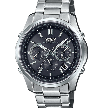 フルメタルケースのソーラー電波時計「LINEAGE」から、6時位置にデジタル表示が付いた実用性を備えるコンビネーションモデルです。耐摩耗性に強いブラックIPをケース、バンドへ施し、風防に反射防止コーティングサファイアガラスを採用。傷が付きにくく、高い視認性を保ちます。 また、カレンダー表示やワールドタイム、アラーム機能、LEDライトなど実用的な機能を搭載しています。