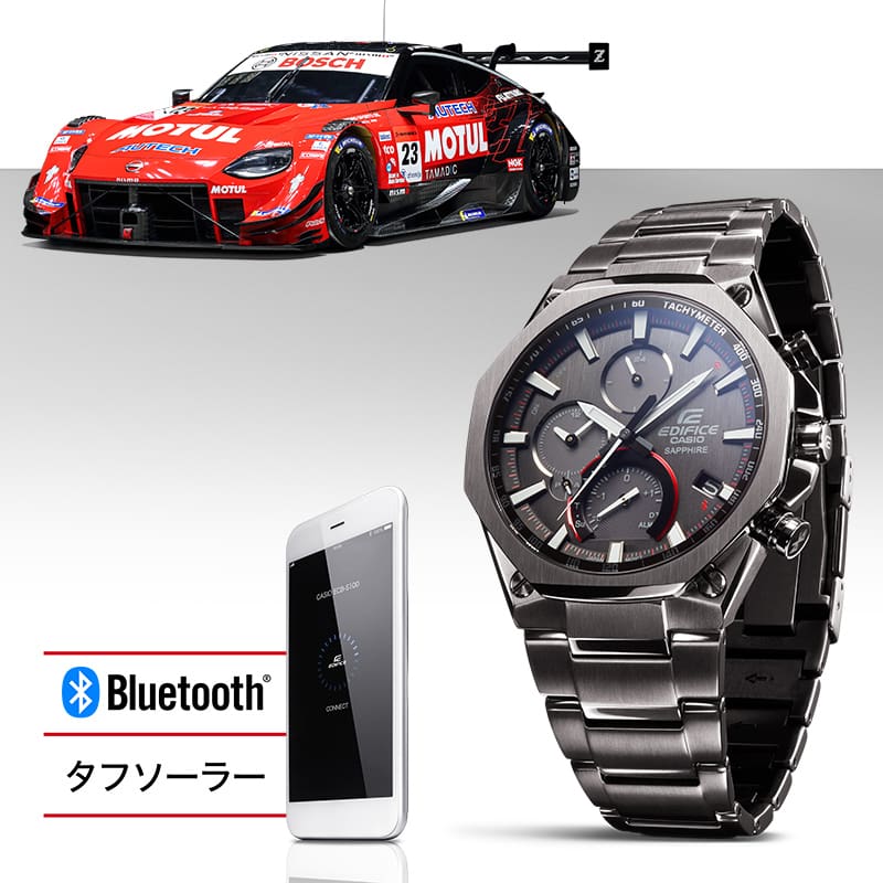 サスペンションアームデザインの カーボンケース採用。スマートフォンリンク& タフソーラーモデル。