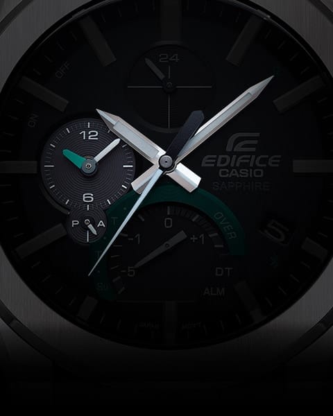 Bluetooth®、タフソーラーを搭載した多針クロノグラフながら、8.9mmの薄型ケースを実現。薄さが際立つフラットベゼルを採用。