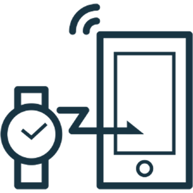 旅行などでタイムゾーンを越えた際は、ボタン操作でスマートフォンと接続。