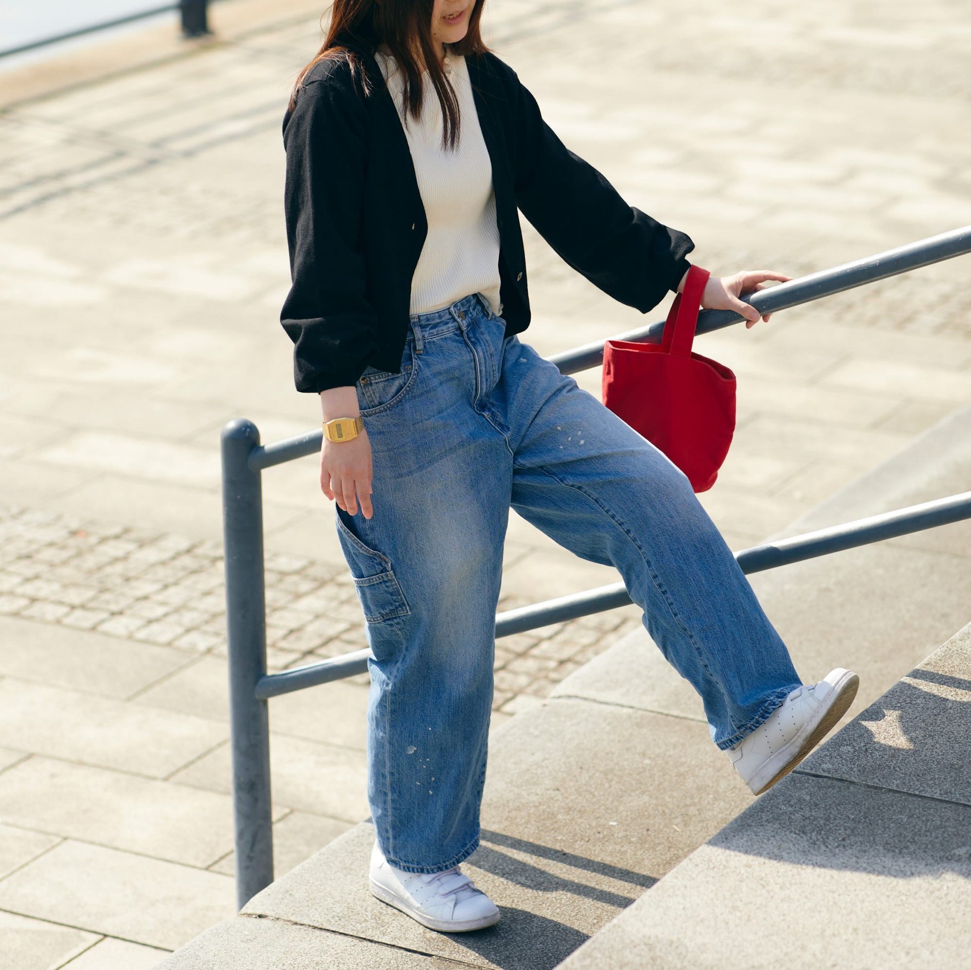 清々しい空気に包まれて、朝の香りを楽しむ瞬間。水辺の階段でほっと一息。ベーシックなスタイルに、鮮やかな赤は印象的な差し色としても効果的です。穏やかなベイエリアの景色を楽しむ時間は、まるでささやかな探検をしているよう。右腕のゴールドウオッチが日差しを受けて煌めき、スタイリングの上質なアクセントに。新しい1日の始まりを、心地よいスタイルで彩るとびきりな時間です。