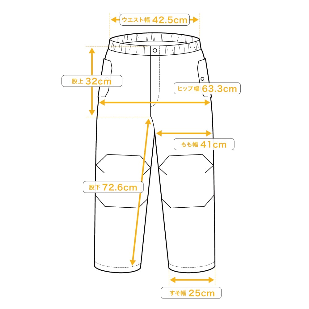 | ウエスト幅 | 股上 | 股下 | ヒップ幅 | もも幅 | すそ幅 | |